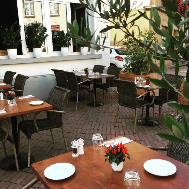 Genießen Sie Ihre Mahlzeit in einer entspannenden Umgebung, drinnen oder auf unserer Außenterrasse.